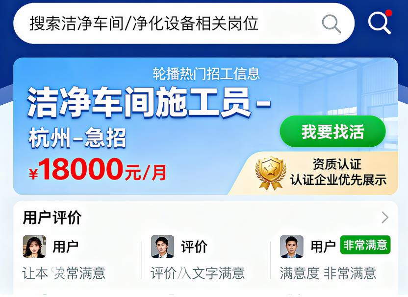 下面是关于“净化工程招工找活平台”的具体推荐,结合市场现状和相关平台功能,为你挑选出几家较为专业、实用的平台,便于企业与施工人才高效对接: